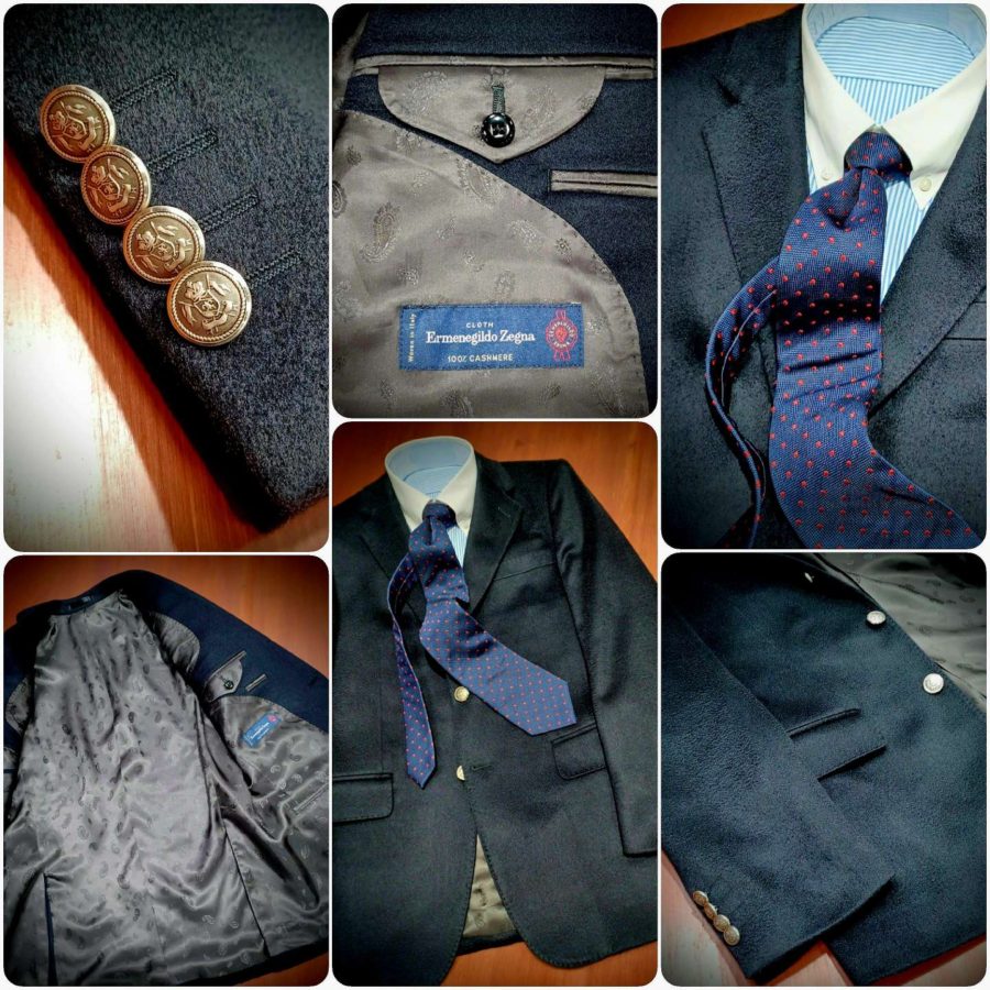 今回はカスタム仕様でメタル釦を施したブレザーに