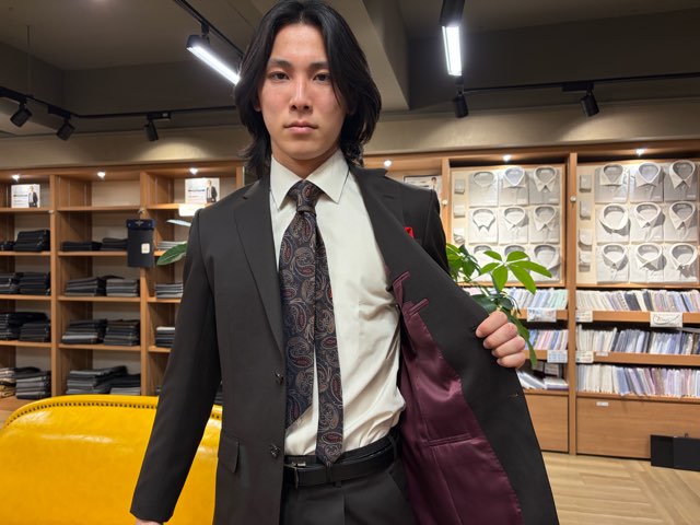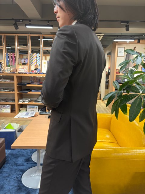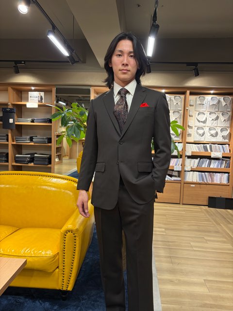 打ち合わせしまして、海外俳優のようなニュアンスになるスーツとなりました。