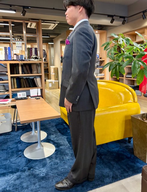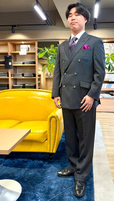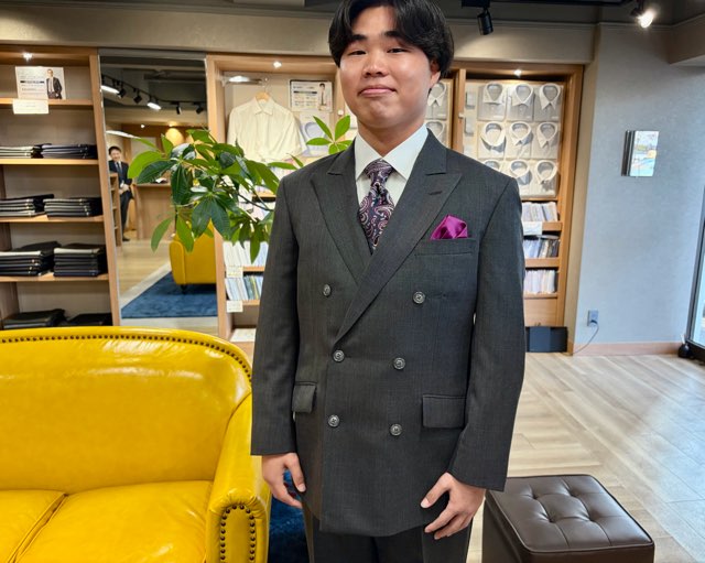 バーズアイグレイ成人式用ダブルスーツ H.K様 大変お似合いです。