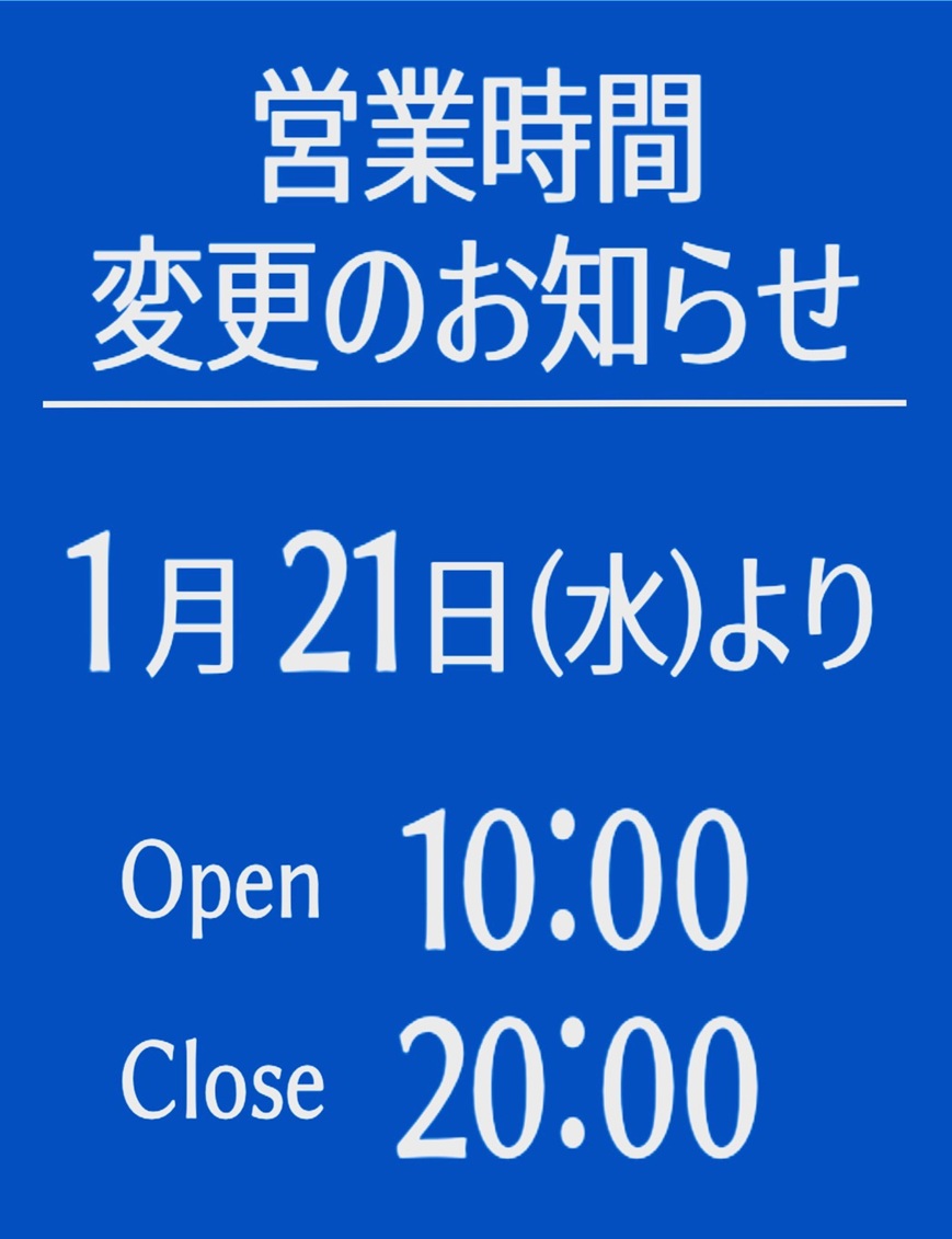 29日からは、また通常通りです。10時から20時の営業ですので、何卒よろしくお願い申し上げます!