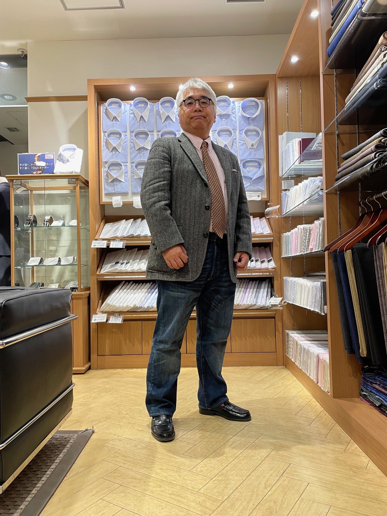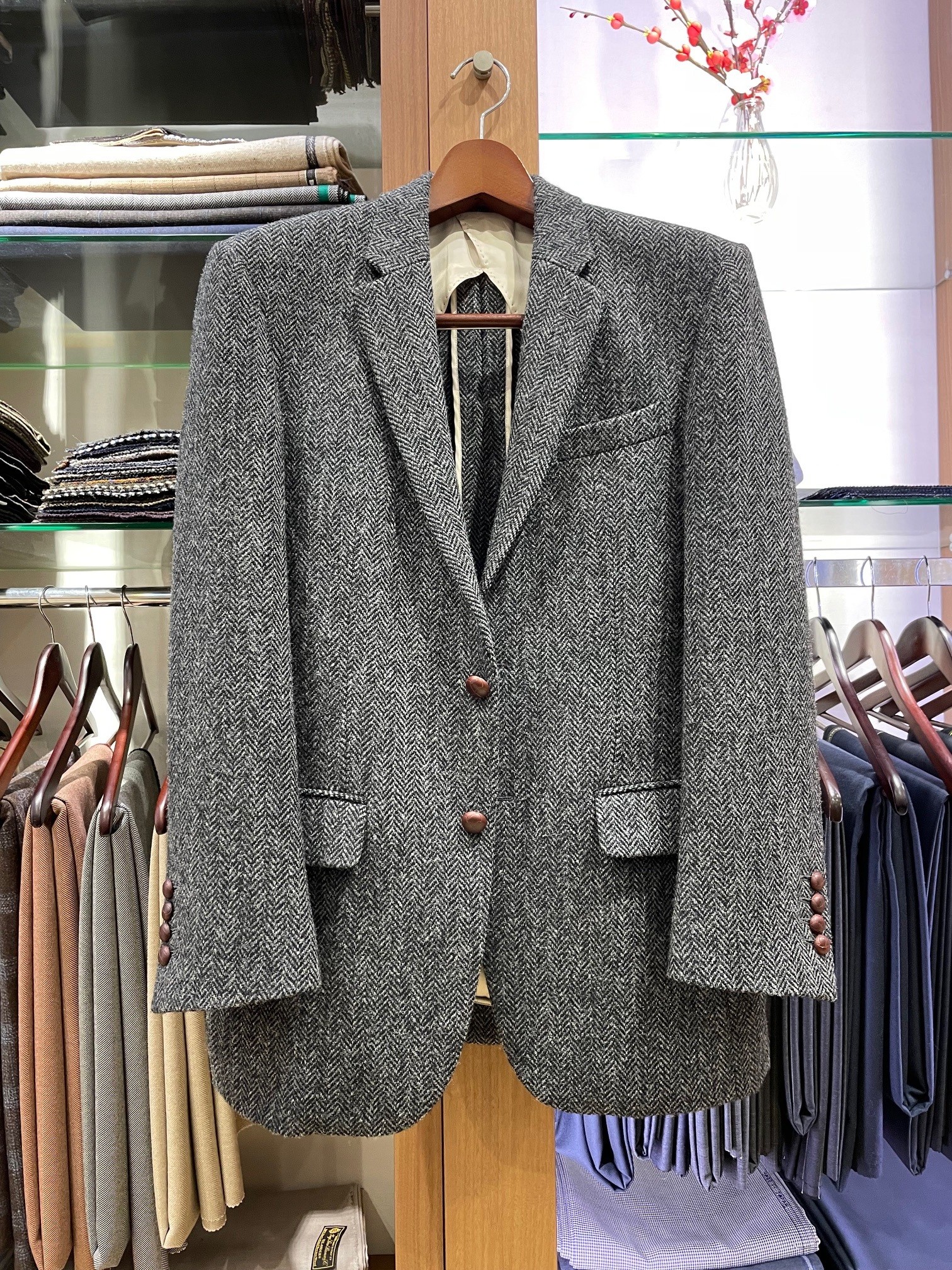 昨年末、お店でツイード・ジャケットを購入するお客様がご来店されたとき、私も偶然このジャケットを着ておりました。
