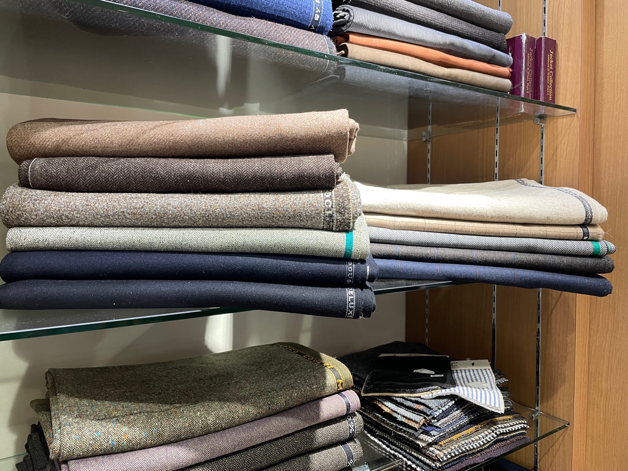 お店にはまだツイード・ジャケット生地を展示しております。