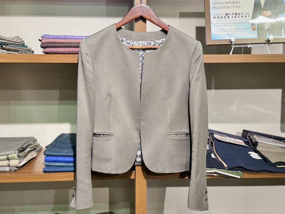 ノーカラージャケットデザインは