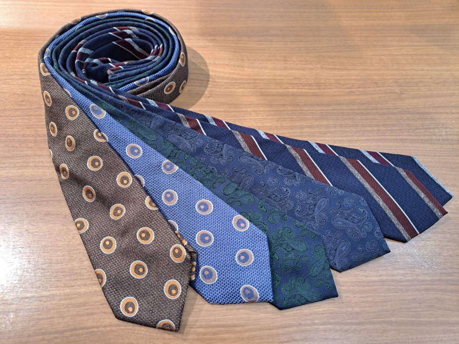 もちろん新柄はたいぶ前に入ってきましたが、本部の皆様が一度各店舗のネクタイを整理して再配布してくださいました。