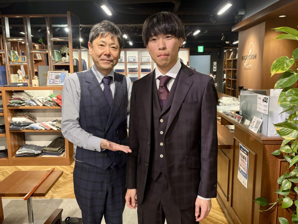 M様は生地選びや採寸時の会話は常にハキハキと、そして決断力も早くとても好青年でした。
