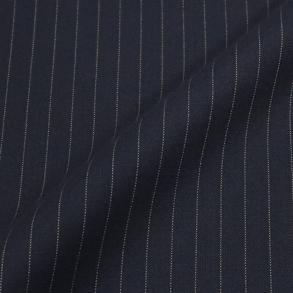 深みのある紺地に、8mm幅で白のピンストライプが入った色柄です。紺の落ち着きに白のラインが映え、全体をすっきりと引き締めた印象に仕上がります。無地感覚で着用しながら程よい存在感があり、シンプルなインナーと合わせるだけで知的で端正な装いに。定番の紺をベースに、シャープさやきちんと感を強調したい方におすすめです。