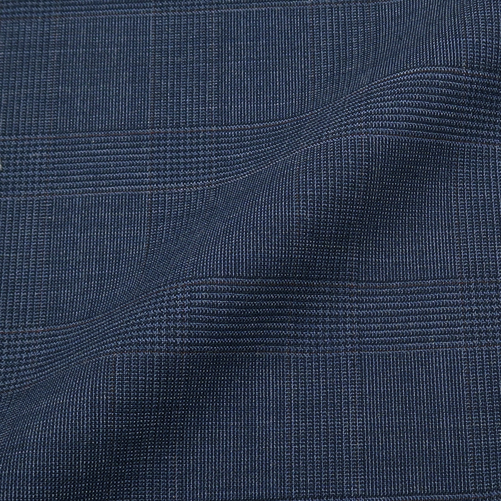 落ち着いた紺をベースに、50mm×40mmのグレンチェック柄が入った色柄です。程よいサイズ感の格子がクラシックで安定感のある印象を与え、紺の持つ誠実さの中にさりげない洒落感を添えます。無地では物足りないが主張しすぎない柄を求める方におすすめです。