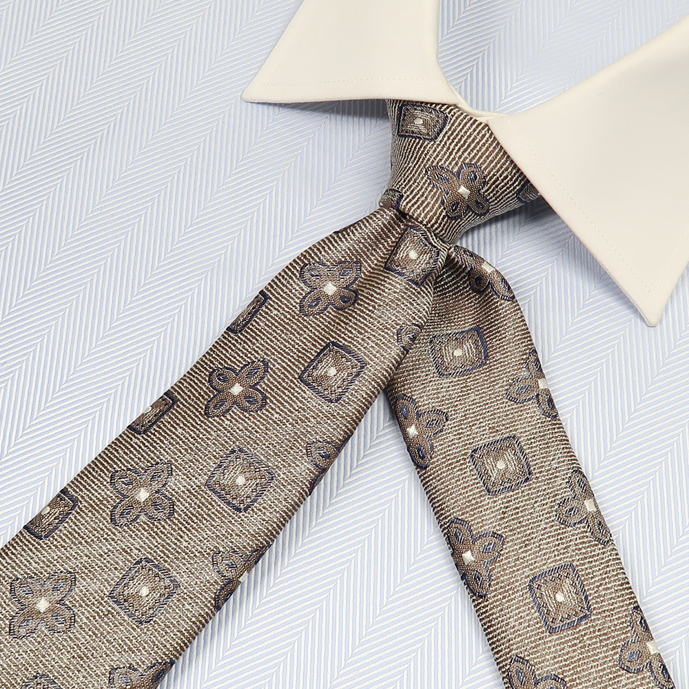 オリジナル ネクタイ 大柄小紋 ブラウン
