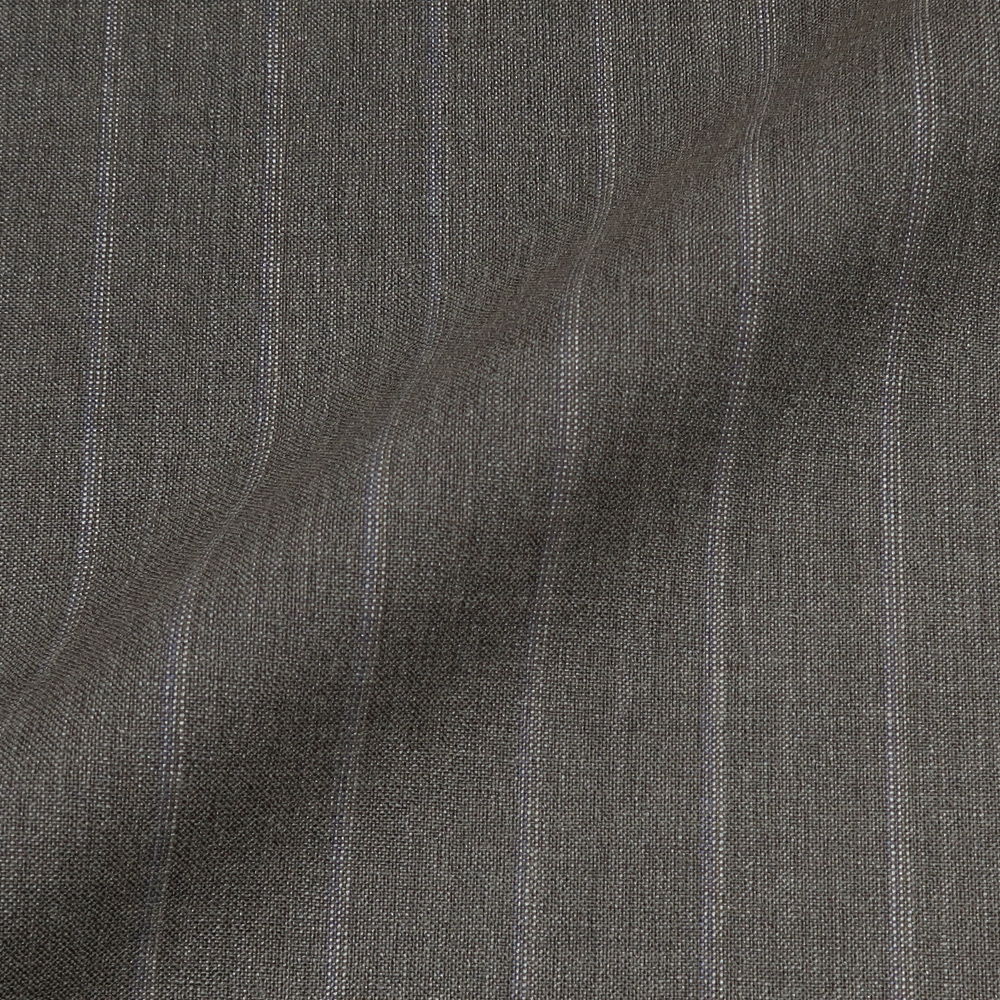 ウール50%ポリエステル50%の春夏向け素材のグレイがかった濃茶ストライプで、20mmピッチのラインが落ち着いた中に程よいリズム感を与えます。爽やかさのある茶の色味がシックで上品な印象を演出し、洗練された雰囲気のスーツに仕上がります。